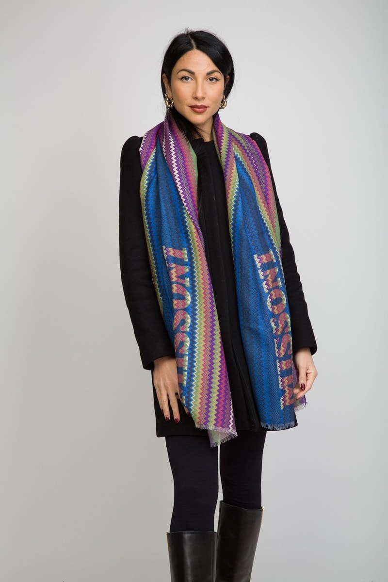Connue pour sa maille et ses rayures chamarrées, la marque italienne Missoni égaie vos looks grâce à ses foulards, cravates et écharpes aux couleurs et motifs éclatants !