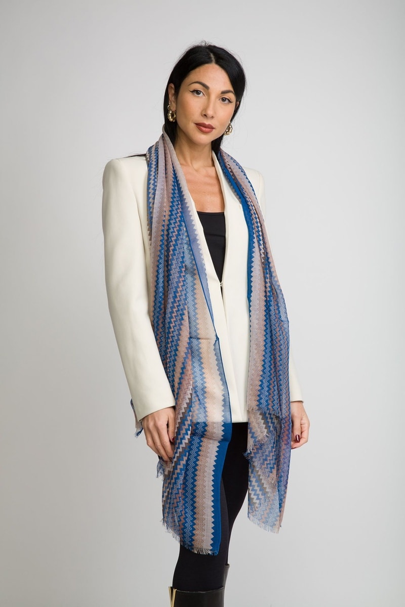 Connue pour sa maille et ses rayures chamarrées, la marque italienne Missoni égaie vos looks grâce à ses foulards, cravates et écharpes aux couleurs et motifs éclatants !