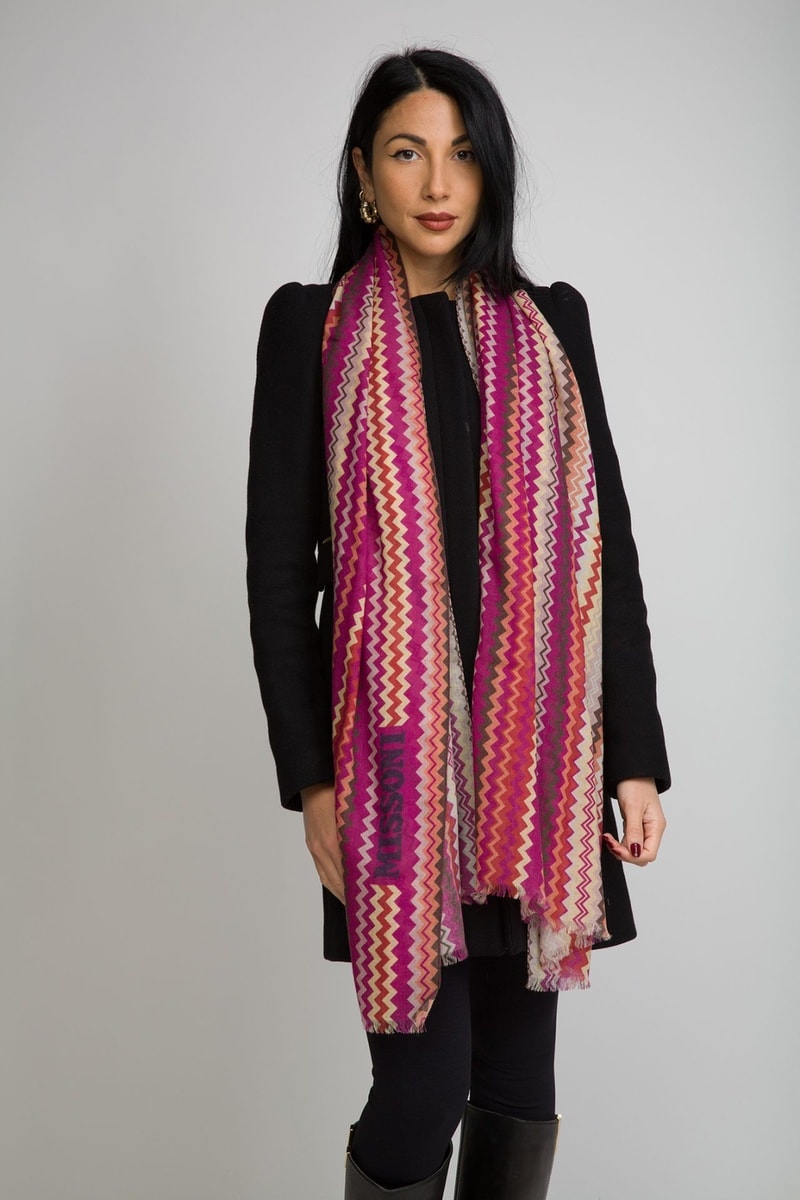 Connue pour sa maille et ses rayures chamarrées, la marque italienne Missoni égaie vos looks grâce à ses foulards, cravates et écharpes aux couleurs et motifs éclatants !