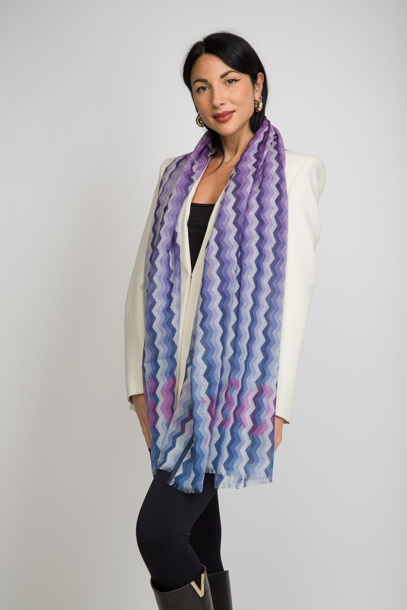 Connue pour sa maille et ses rayures chamarrées, la marque italienne Missoni égaie vos looks grâce à ses foulards, cravates et écharpes aux couleurs et motifs éclatants !