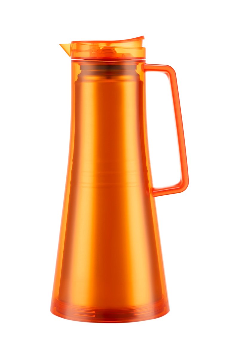 Carafe isotherme en plastique sans BPA et acier inoxydable.