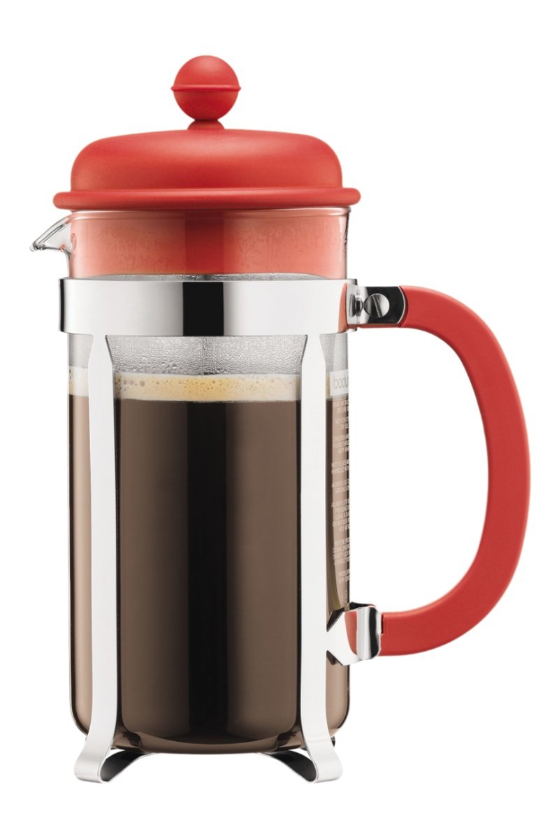 Conseil d’utilisation : placer la cafetière Caffettiera sur une surface plate, maintenir la poignée fermement et pousser le piston de la carafe. Pour chaque tasse ou 12 cl d'eau, ajouter une généreuse cuillère à café ou cuillère de dosage Bodum de café en gros grains. Verser de l'eau chaude dans la carafe (d'une température d'environ 92 °C à 96 °C), remplir jusqu'à 2,5 cm du bord, et mélanger avec une cuillère en bois ou en plastique. Mettre le piston au-dessus du pot et tourner le couvercle de sorte que le bec verseur soit fermé pour retenir la chaleur. Laisser infuser 4 min, puis rabattre lentement le piston. Dévisser le couvercle pour ouvrir le bec verseur et servir.