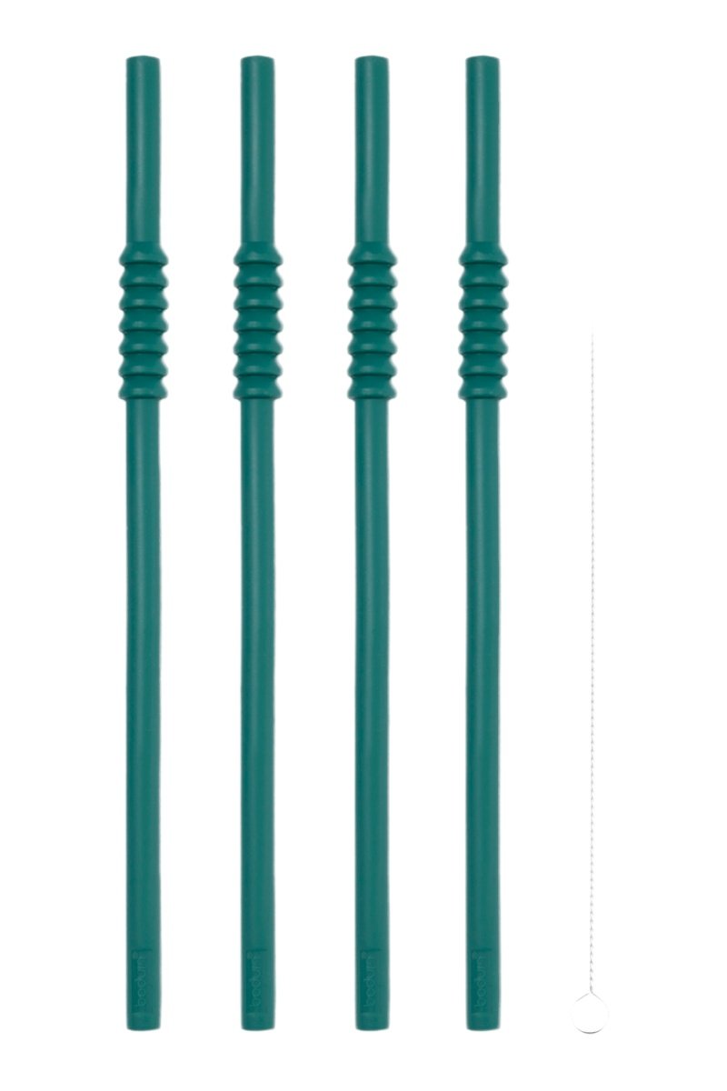 4 pailles en silicone sans BPA avec écouvillon en acier inoxydable.