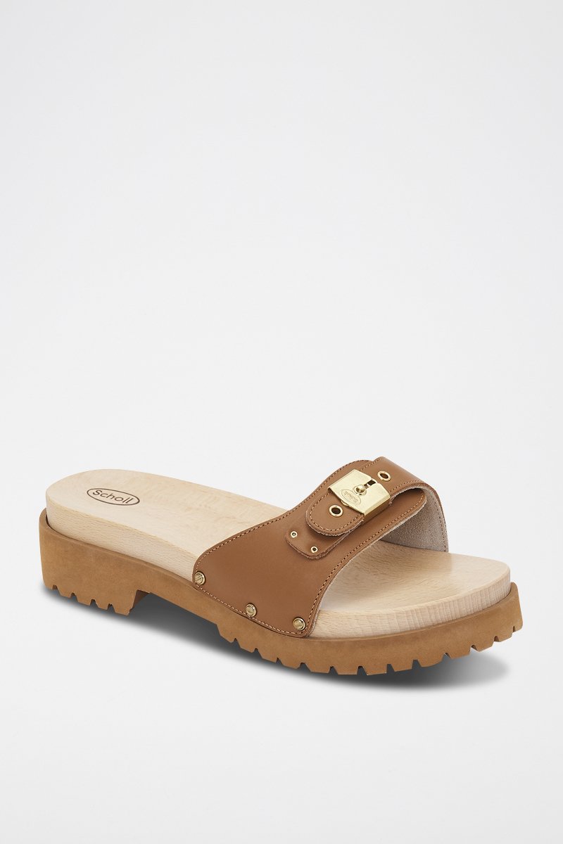Mules à talons en cuir.