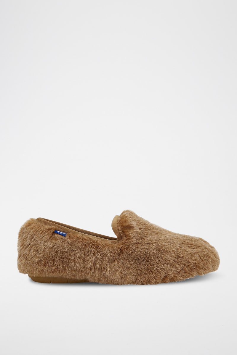 Slippers en fourrure synthétique.