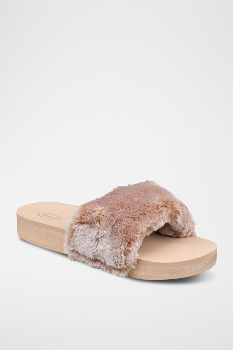 Mules en fourrure synthétique.