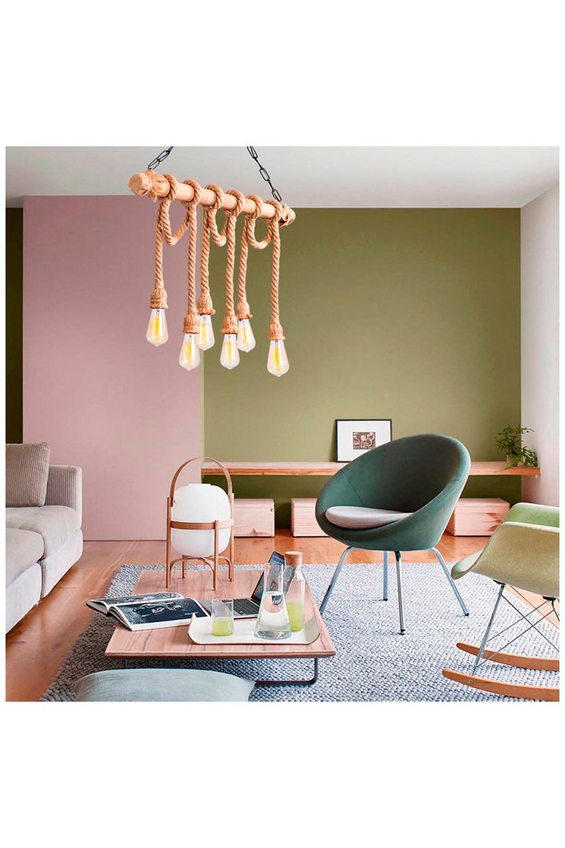 Suspension Erebos - Noir et naturel - 6 x 100 W