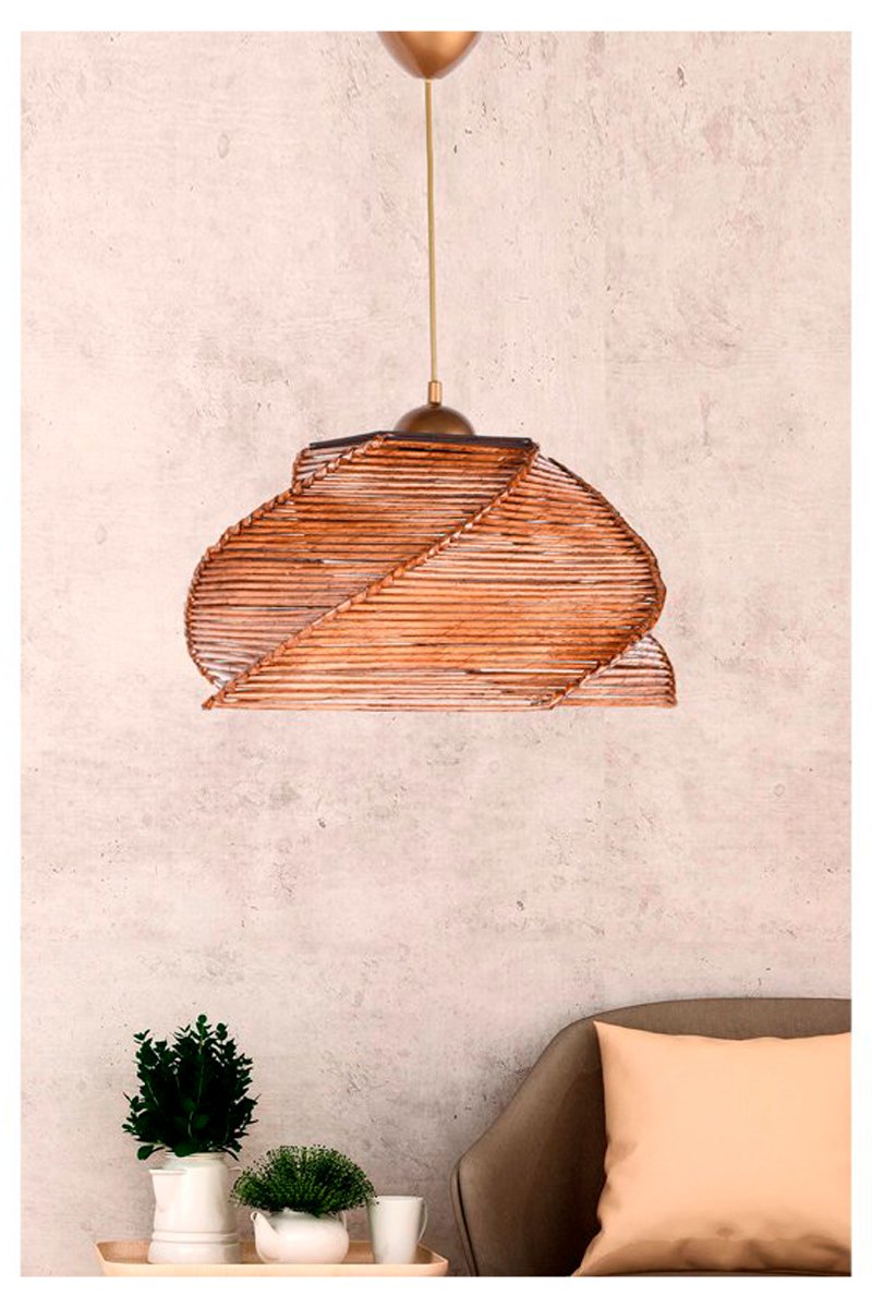 Suspension en bois et bambou Pentagone Antiquation - Naturel et doré