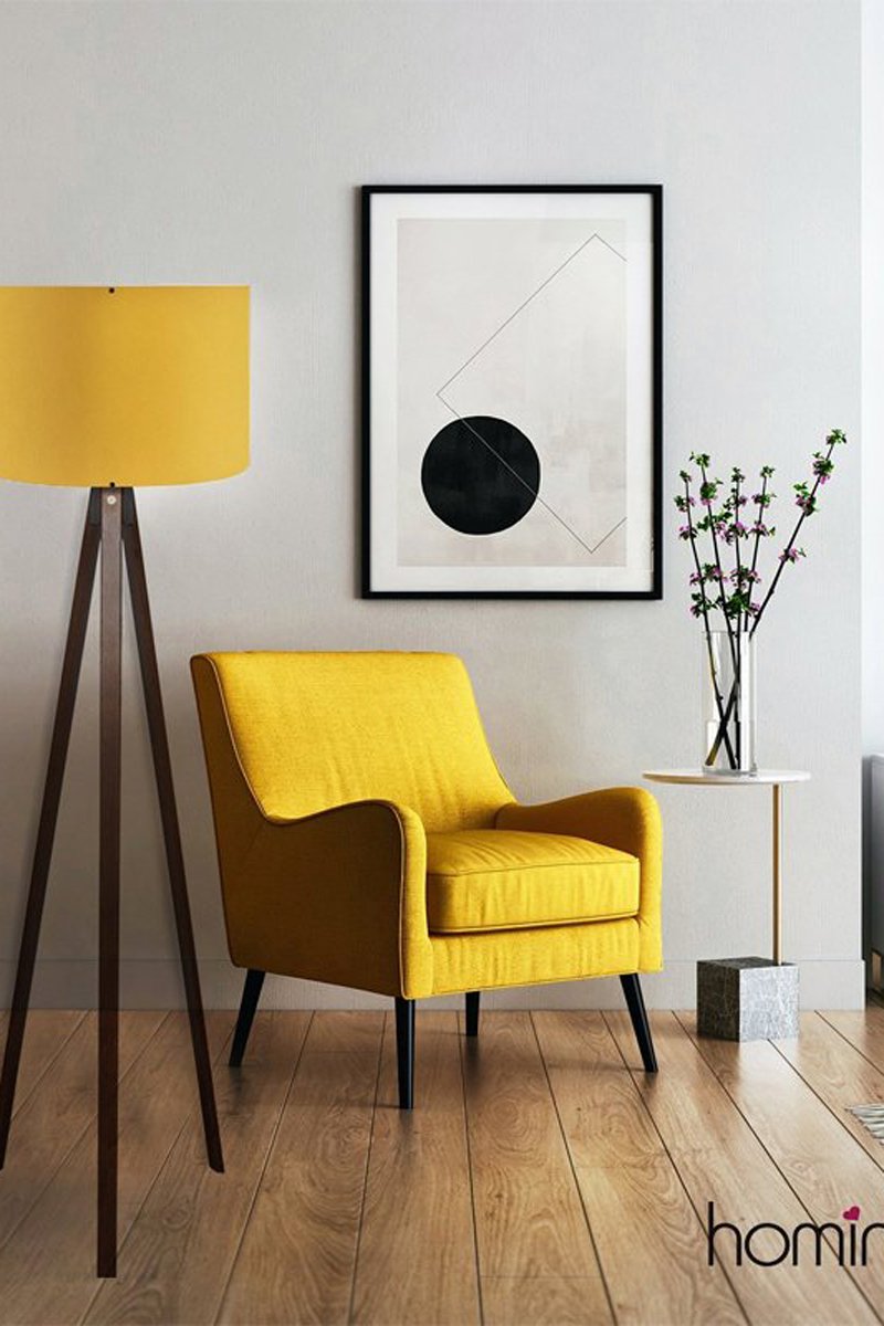 Lampadaire trépied - Jaune et marron - 40 W - 140 cm