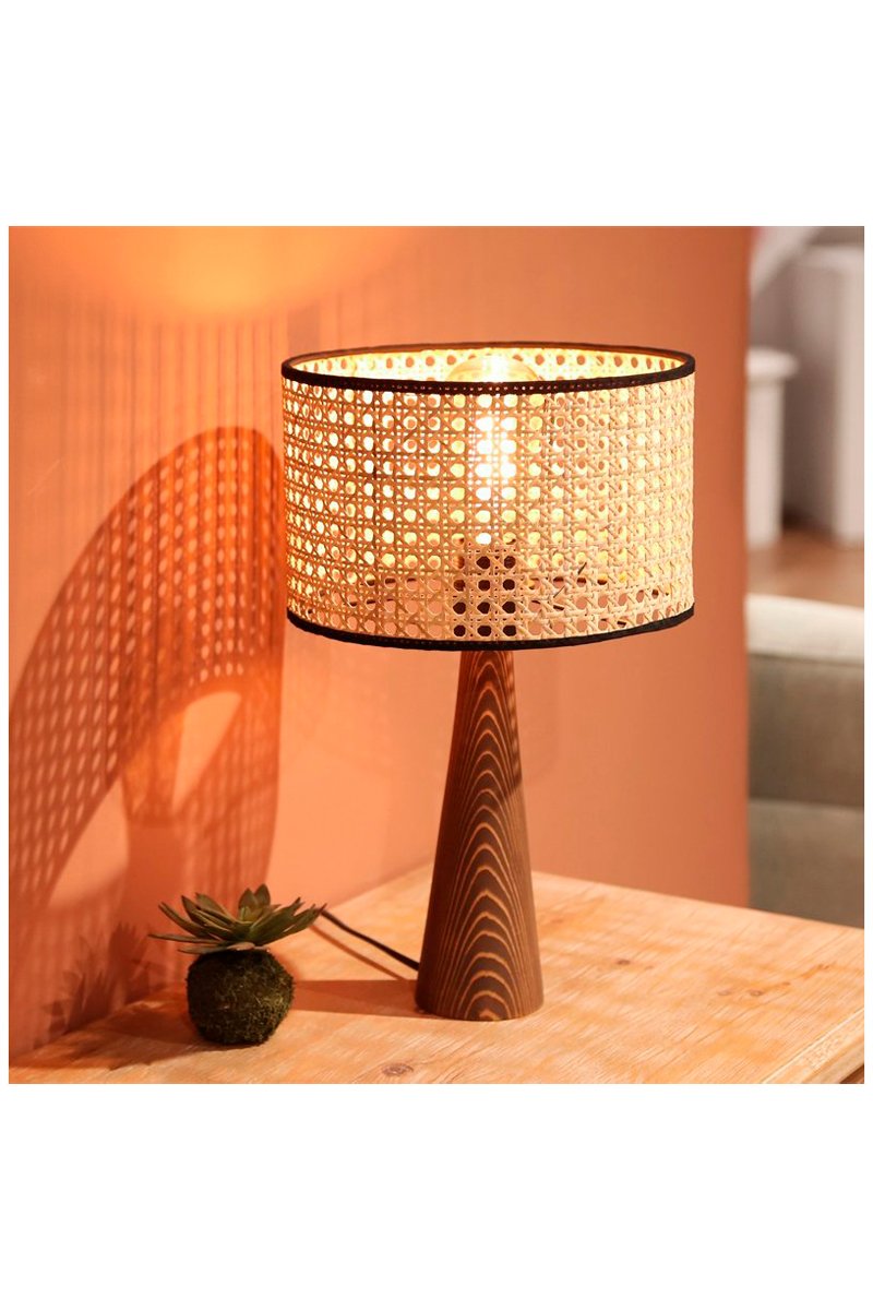 Lampe à poser en bois et rotin - Naturel et beige - 5-9 W