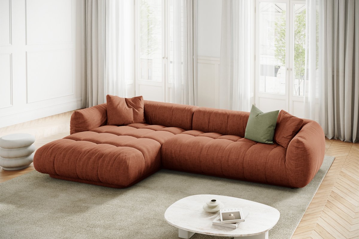 Canapé d’angle gauche modulaire Julia - Rouge brique - 3 places - En tissu structurel
