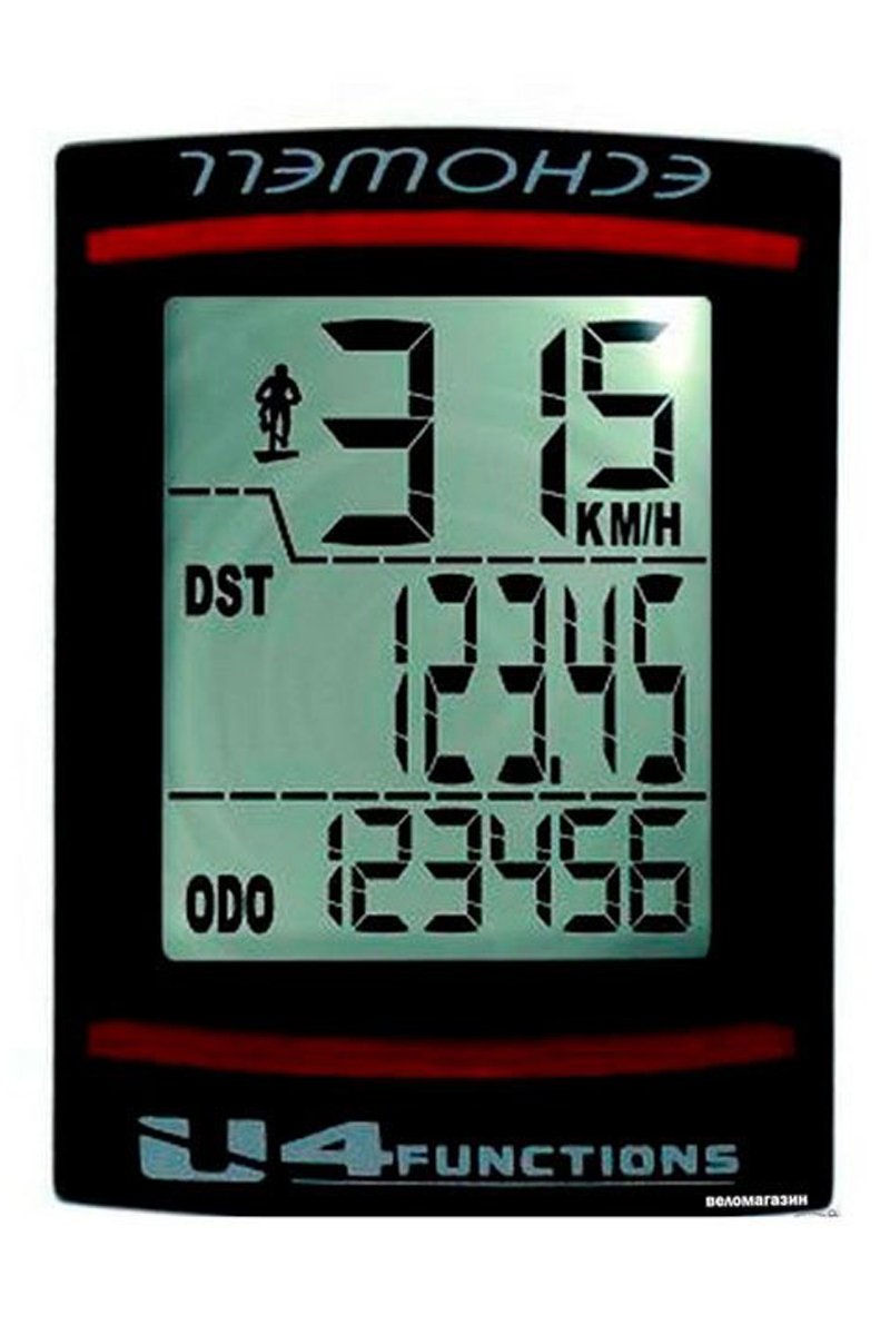 L'écran affiche : la vitesse instantanée, la vitesse moyenne, la distance totale et la distance partielle.