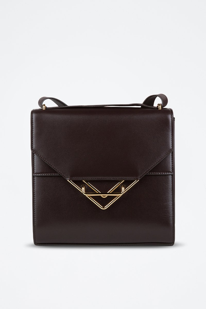 Sac bandoulière en cuir de veau et cuir d'agneau The Clip - Chocolat et doré - Bottega Veneta