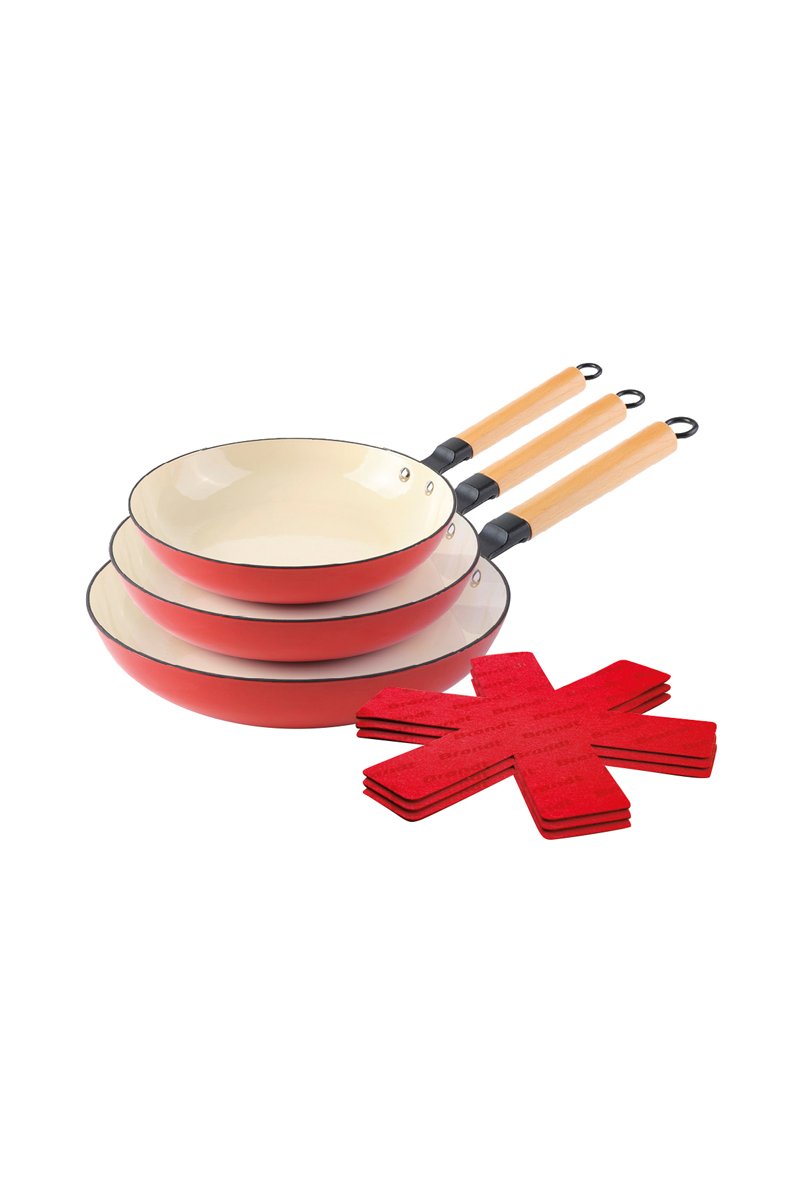 3 poêles en fonte émaillée avec protège-poêles - 20/24/28 cm