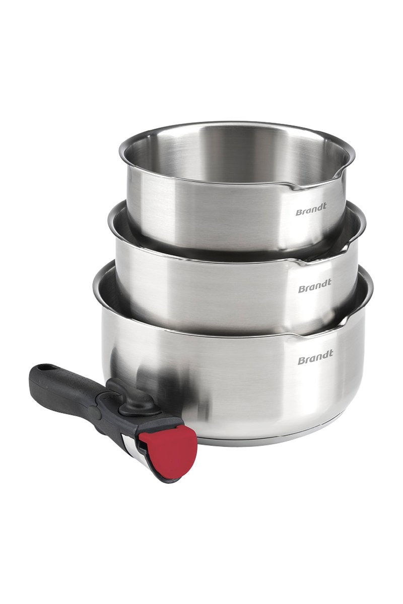 3 casseroles et 1 manche amovible en acier inoxydable 18/8 - 16/18/20 cm