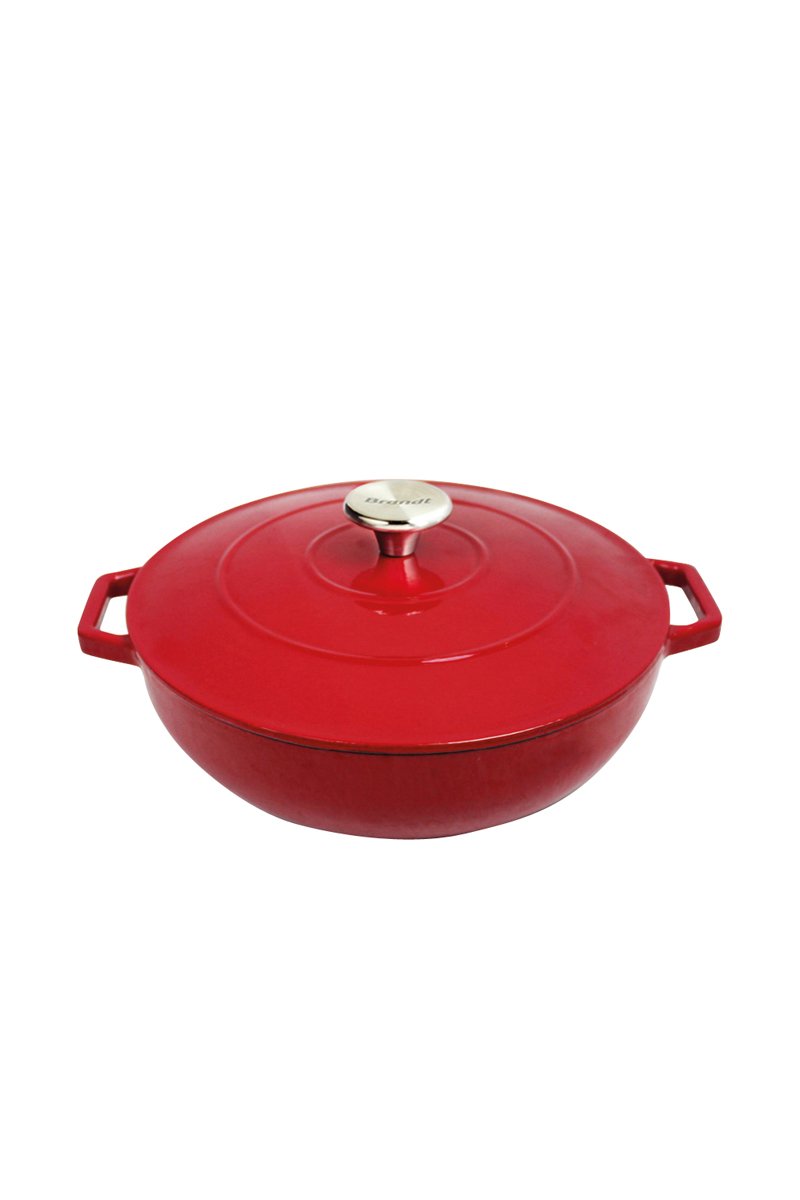 Couvercle en fonte avec bouton en acier inoxydable résistant à la chaleur.