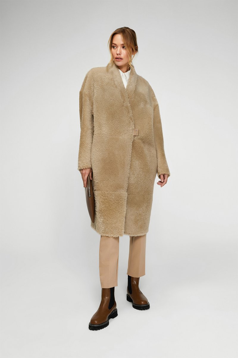 Manteau réversible en peau lainée de mouton - Crème