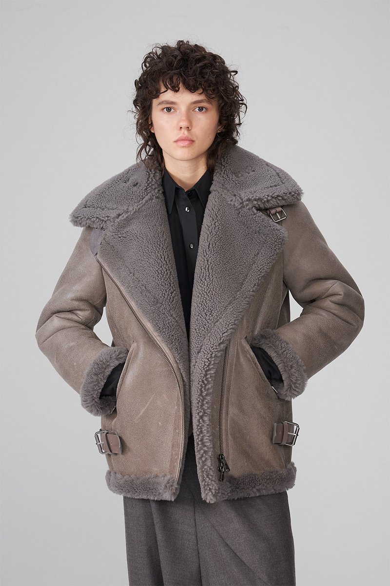 Manteau en peau lainée de mouton - Gris