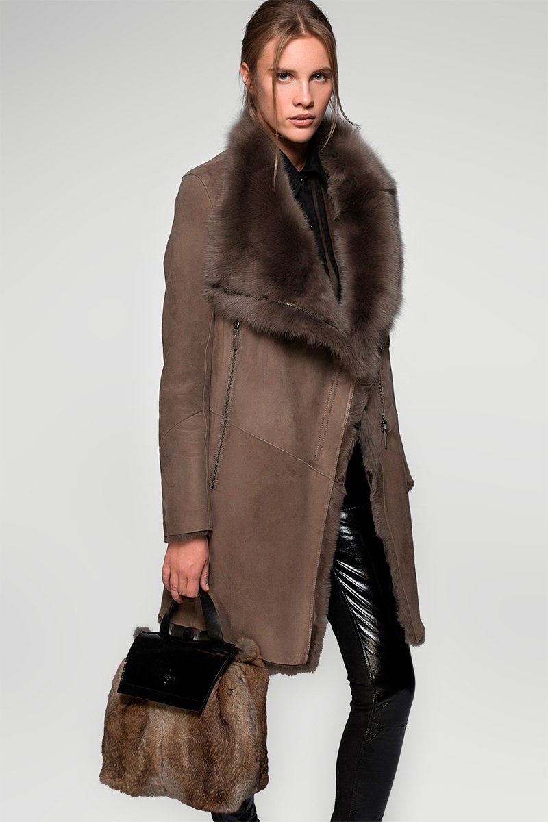Manteau en peau lainée de mouton - Marron
