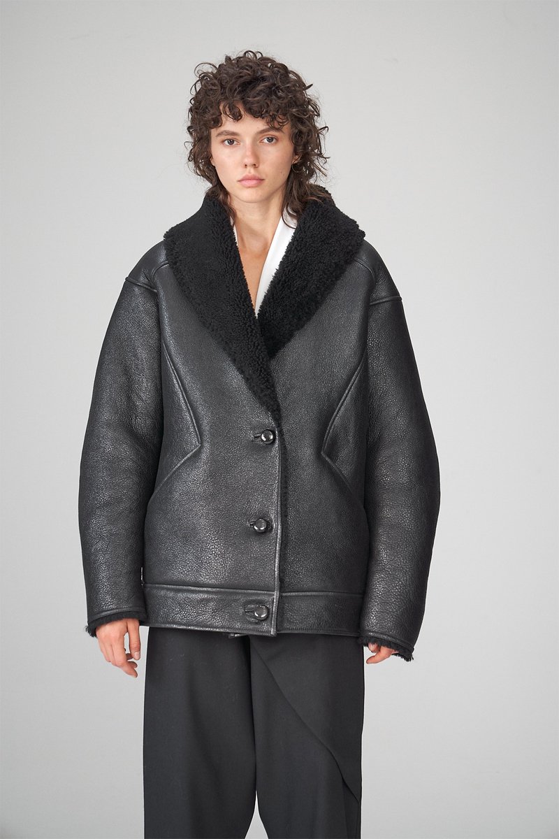 Manteau en peau lainée de mouton - Noir
