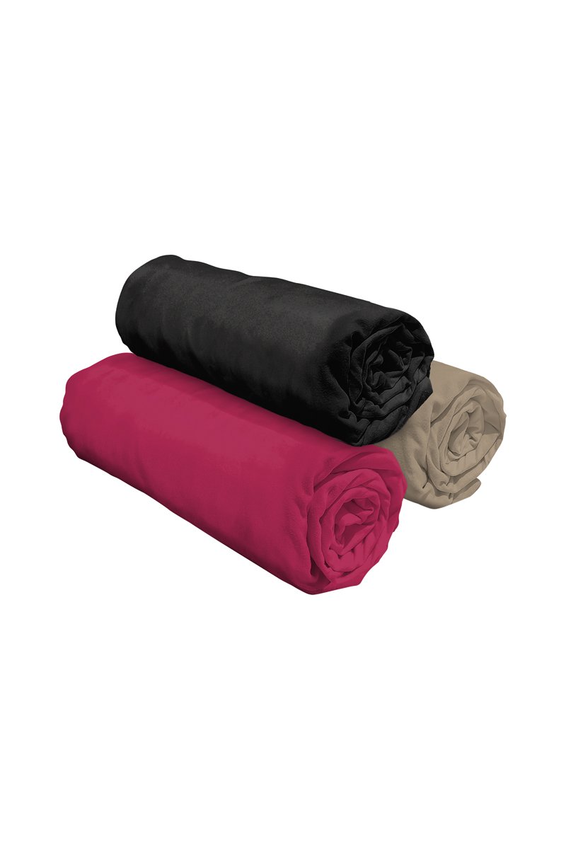 3 draps-housses en coton 57 fils/cm² - Noir et fuchsia