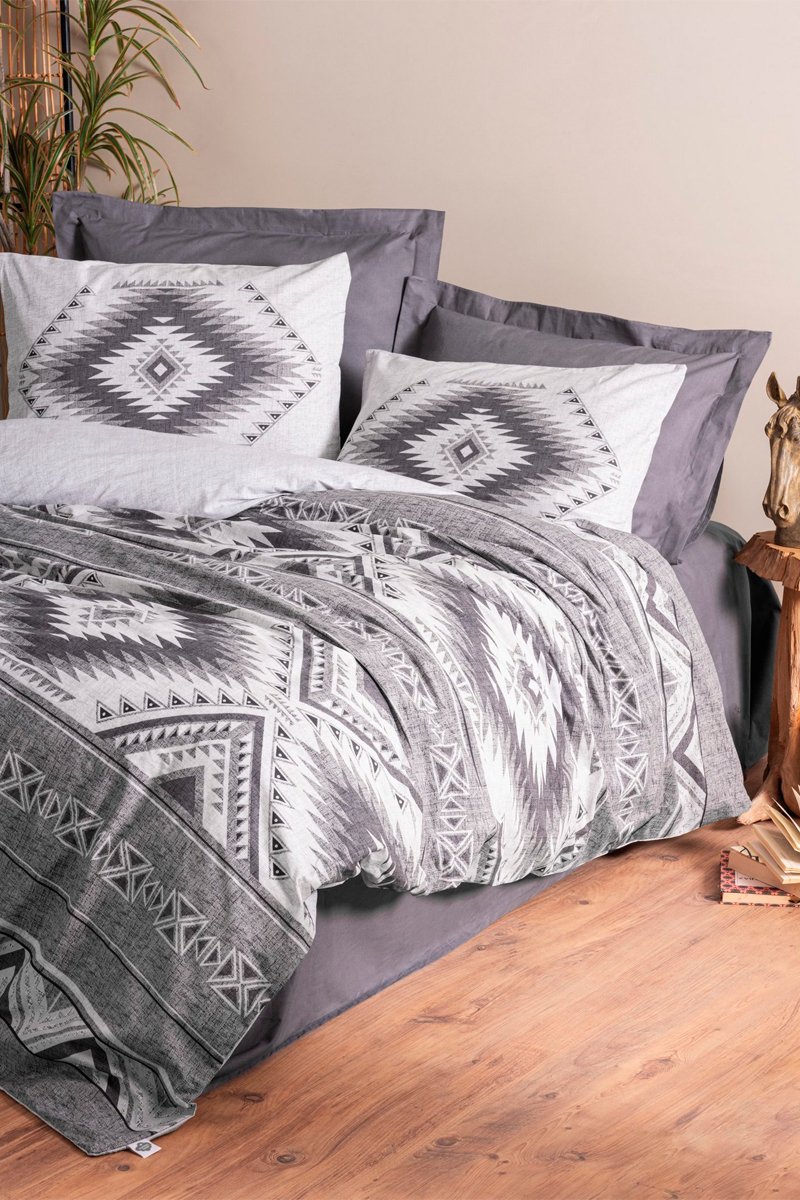Parure de couette en coton 140 fils/cm² Delos - Blanc et gris