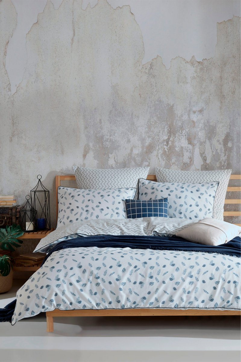 Parure de couette en coton 57 fils/cm² Foglia - Bleu marine et blanc
