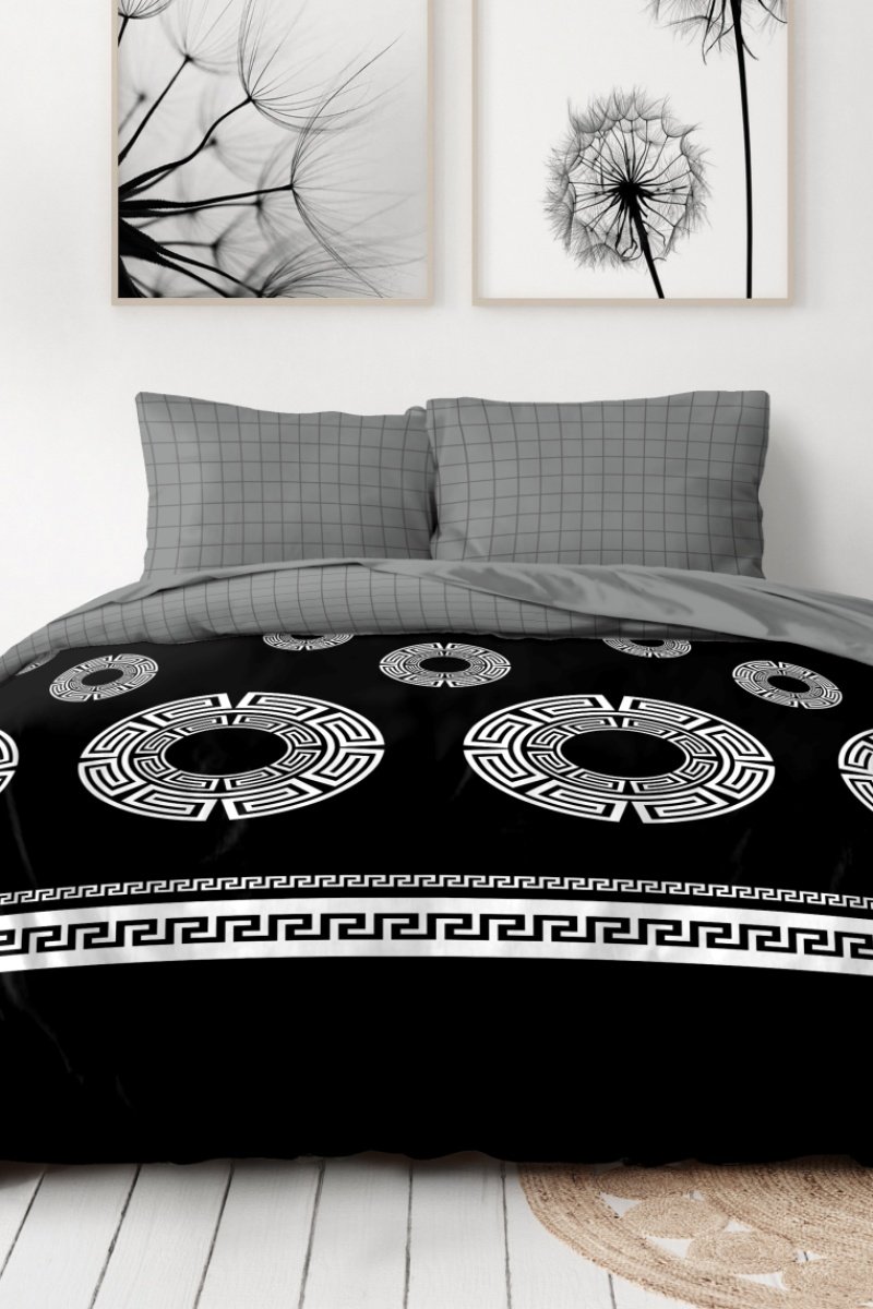 2 parures de couette en microfibre 75 fils/cm² Fuji et Kenal - Noir et gris