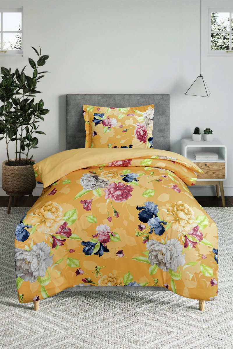 Parure de couette en coton 57 fils/cm² Fiori - Jaune