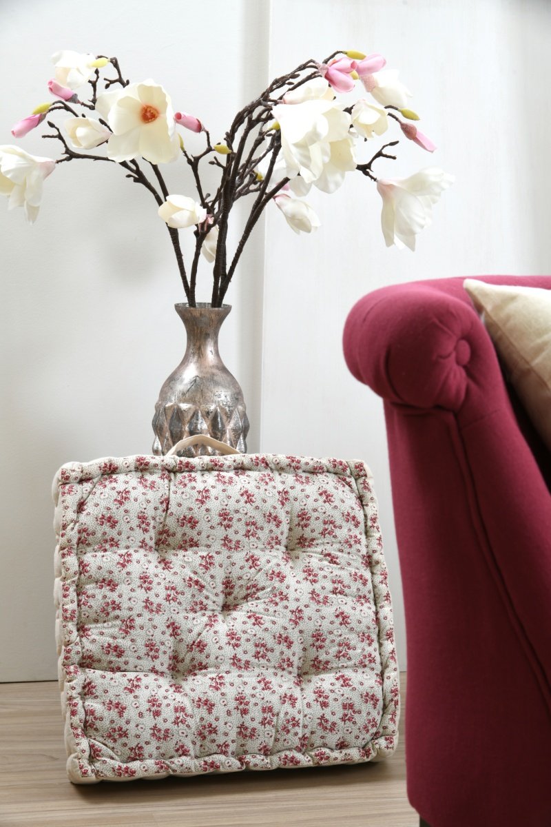 Coussin de sol Ginny - Rose et blanc - 45 x 45 cm