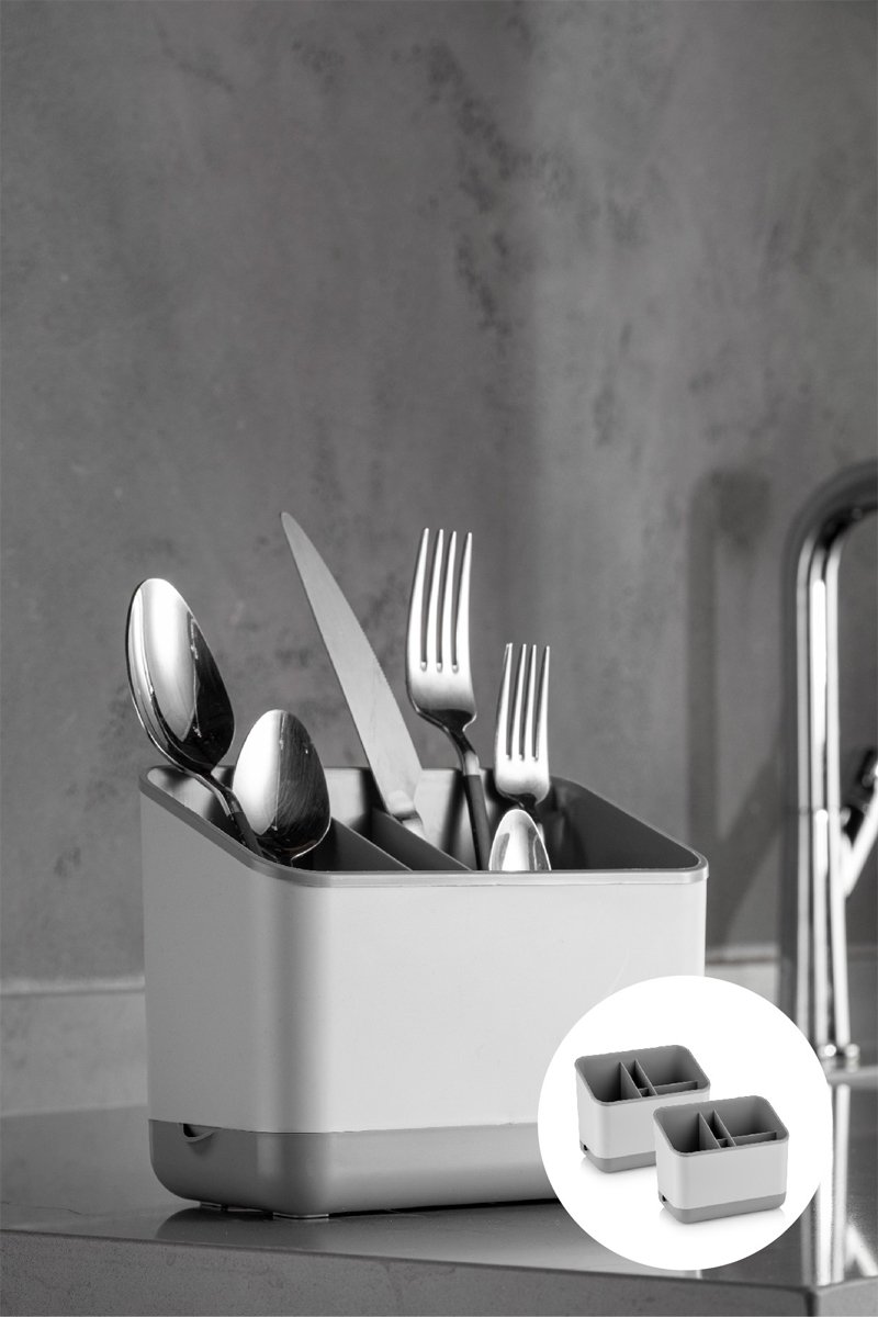 Organiseur à couverts et ustensiles - 16,5 x 10 x 14 cm - Gris
