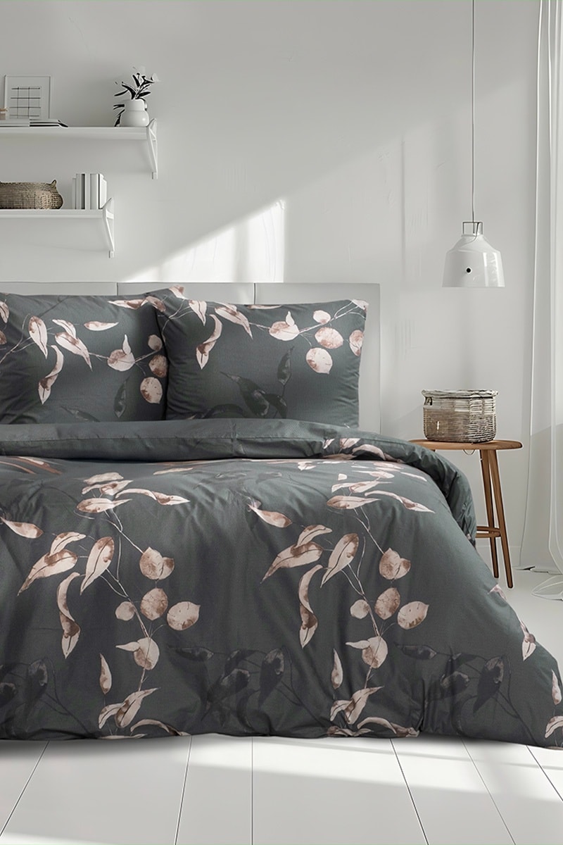 Parure de couette en coton Tivory - 57 fils/cm² - Anthracite et beige