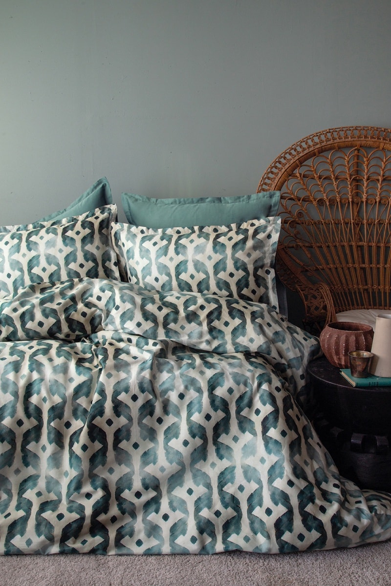 Parure de couette en satin de coton Batique 83 fils/cm²- Vert et beige