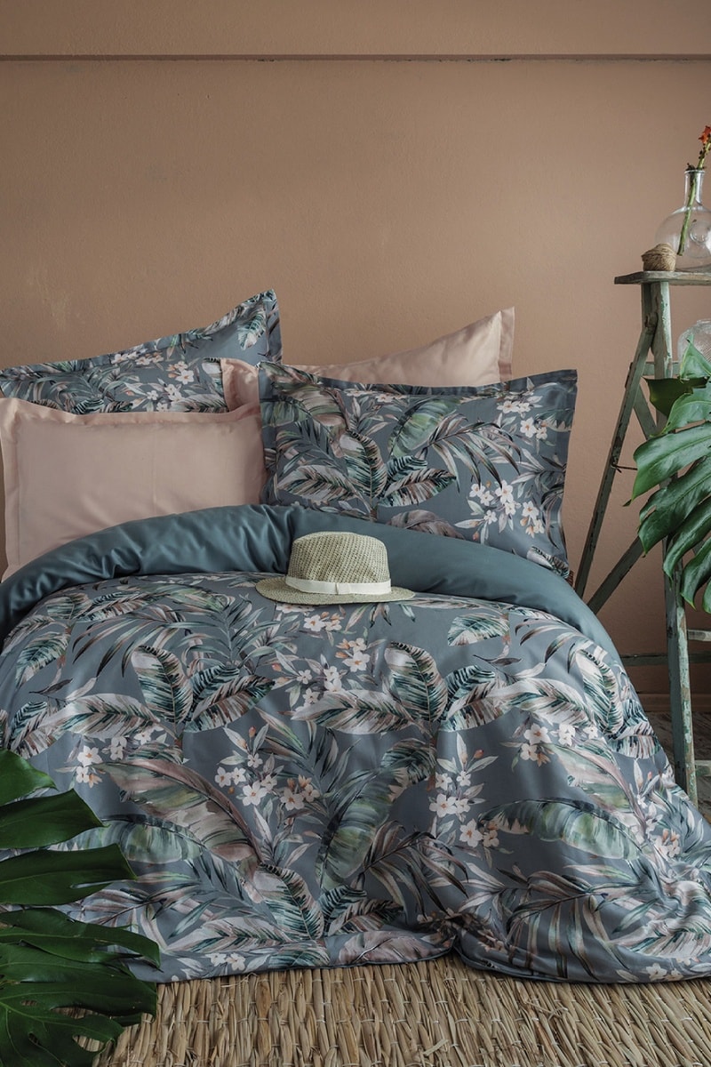Parure de couette réversible en satin de coton Laorine - 83 fils/cm² - Vert