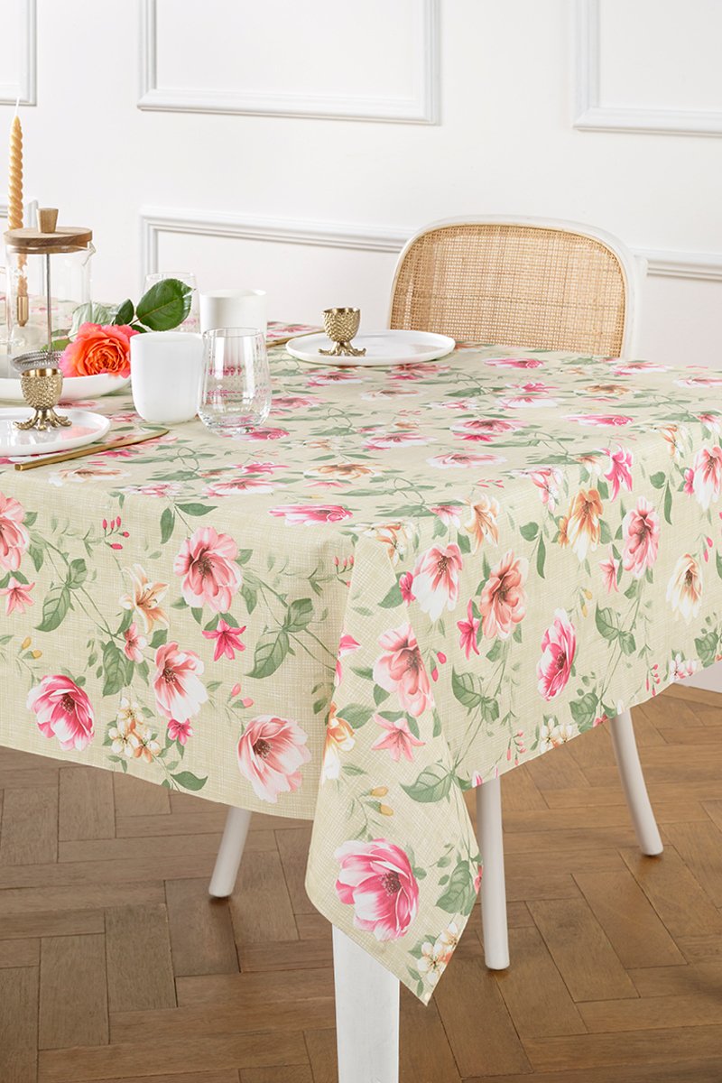 Nappe rectangulaire Sérénade florissante - Taupe et rose