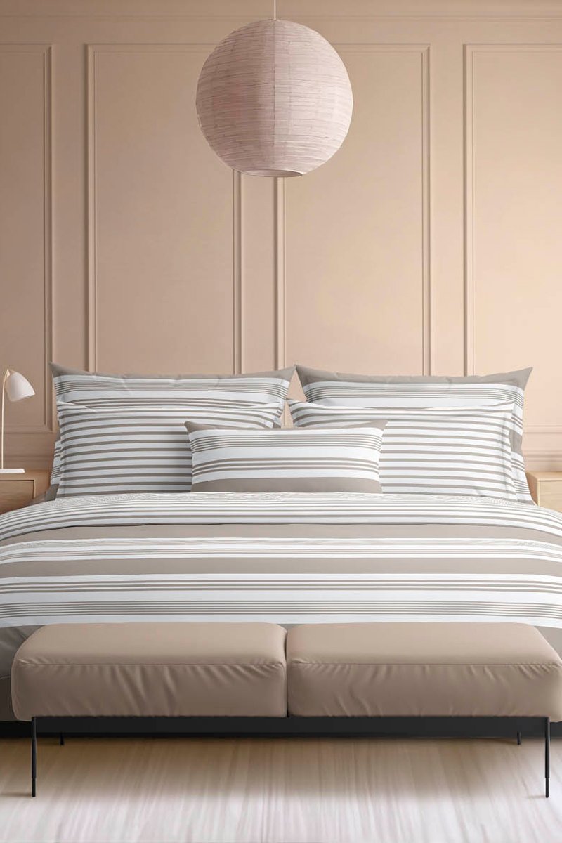 Parure de couette en satin de coton 80 fils/cm² Alizée - Taupe et blanc