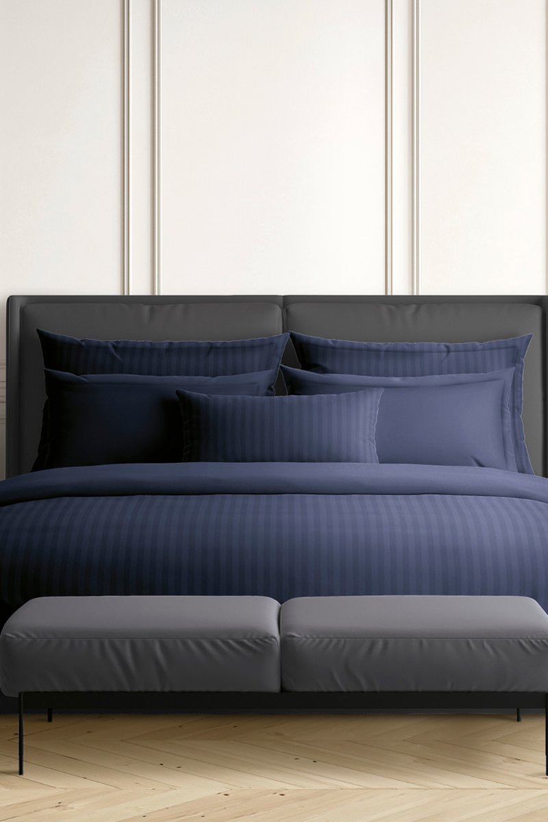 Parure de couette en satin de coton 80 fils/cm² Dobby - Bleu foncé