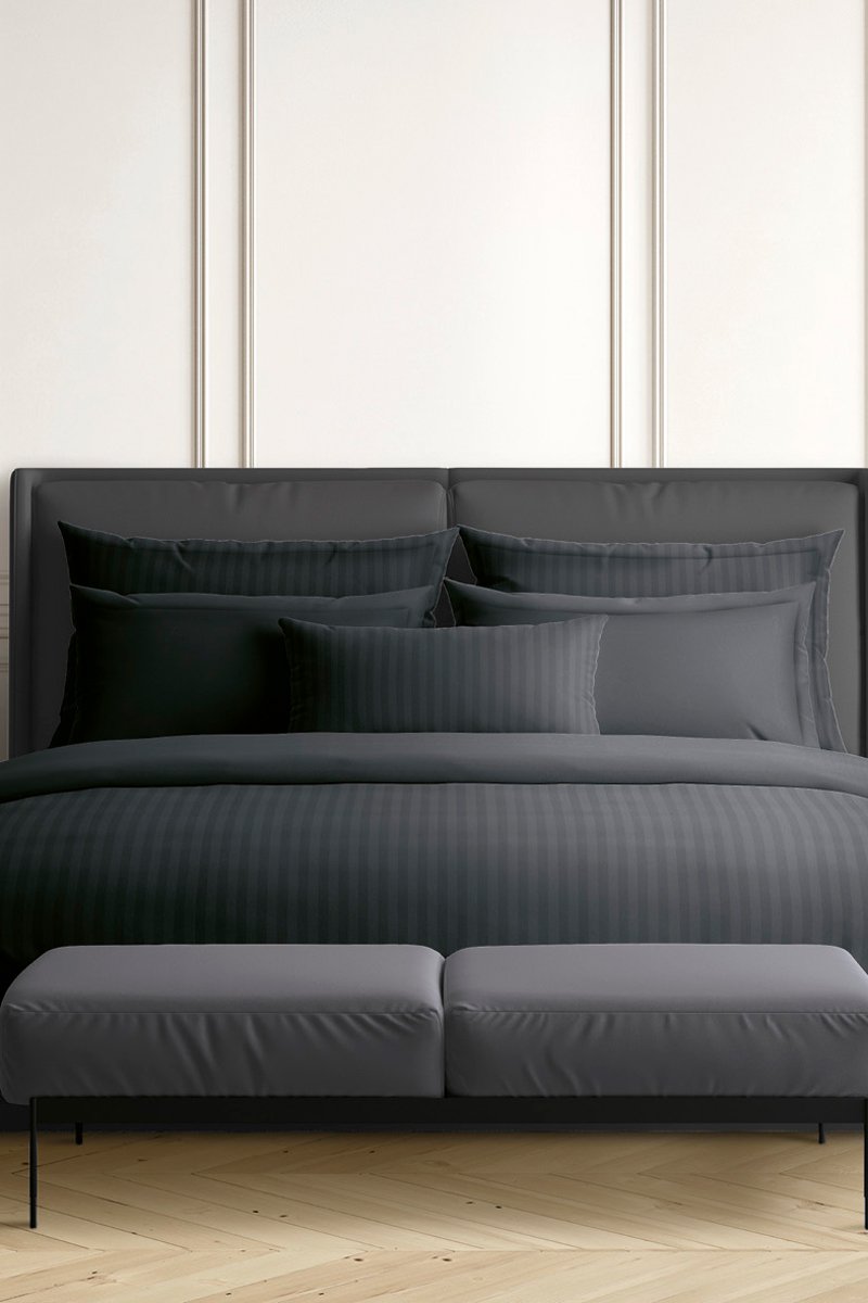 Parure de couette en satin de coton 80 fils/cm² Dobby - Anthracite et noir