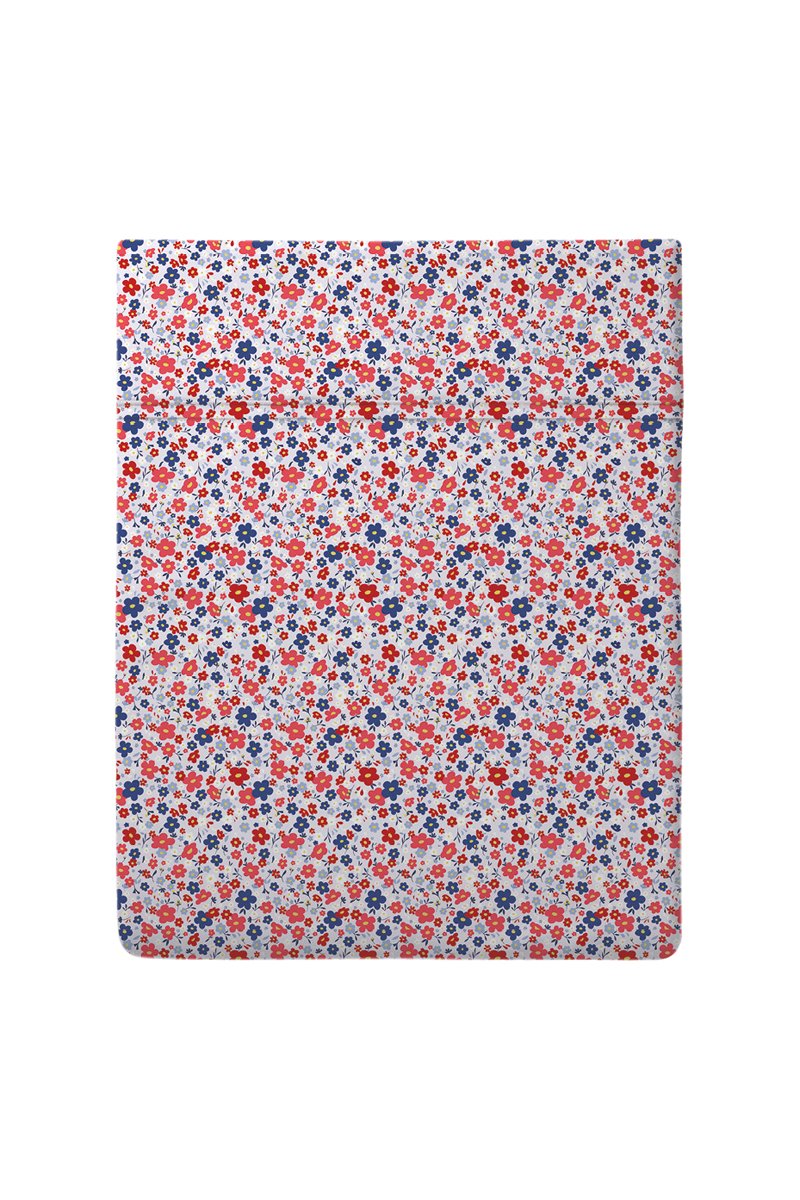 Drap plat en satin de coton 200 fils/cm² Capucine - Bleu et blanc