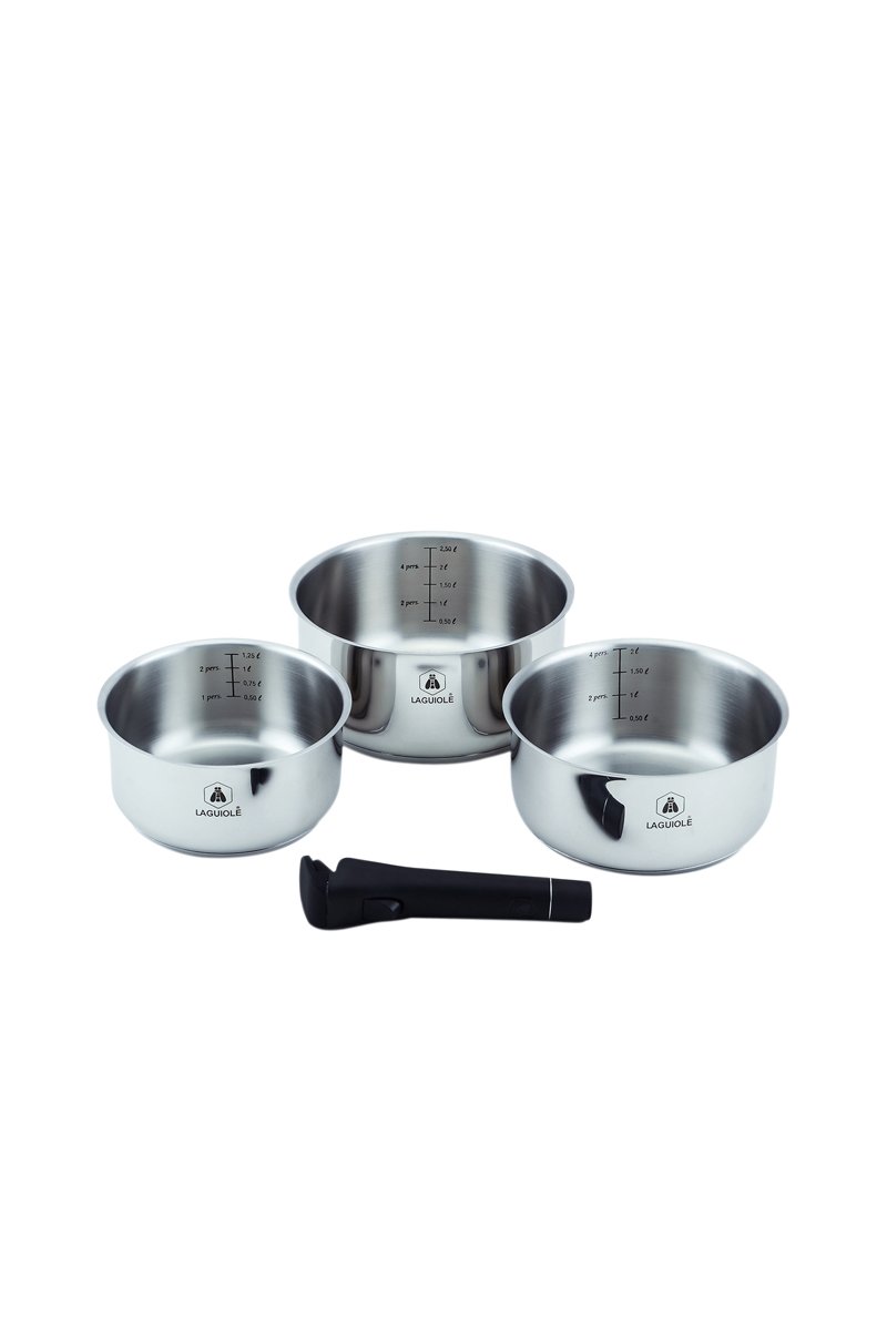 3 casseroles et poignée amovible en acier inoxydable - 16/18/20 cm - 1,25/2/2,5 l