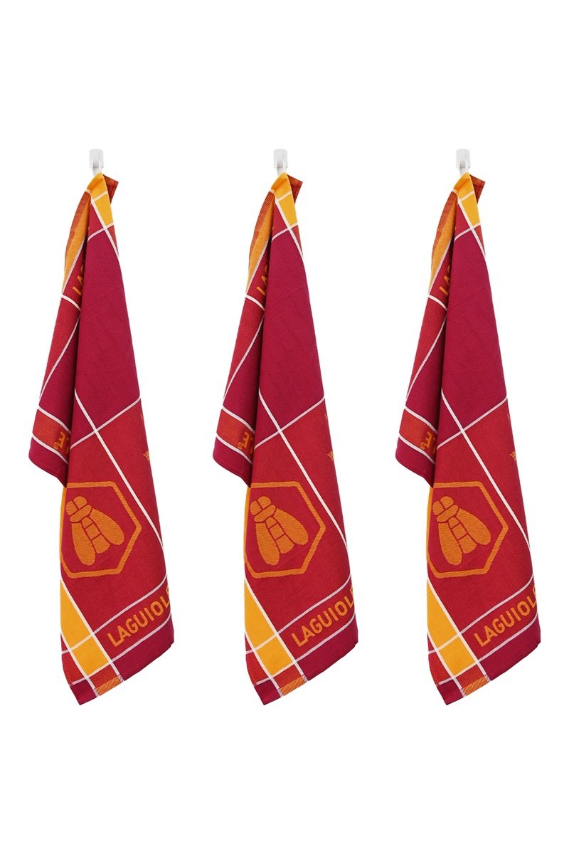 3 torchons en coton Egyptien Collection Tartan - Orange