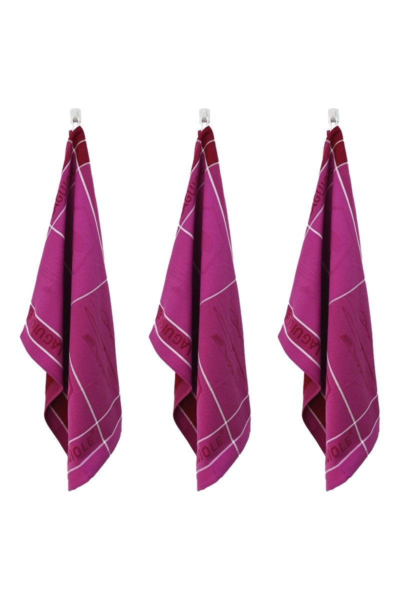 3 torchons en coton Egyptien Collection Tartan - Mauve