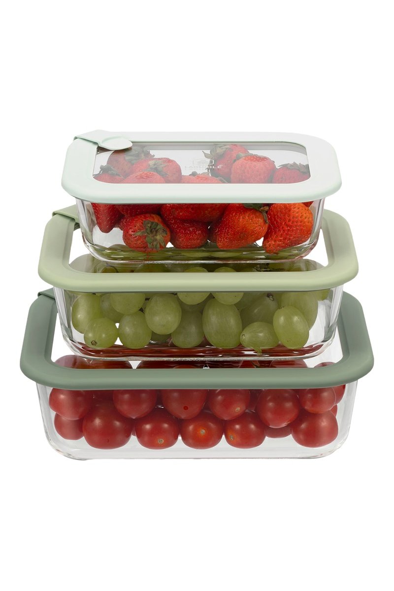 3 boîtes de conservation en verre borosilicate avec couvercle - 640/1050/1520 ml