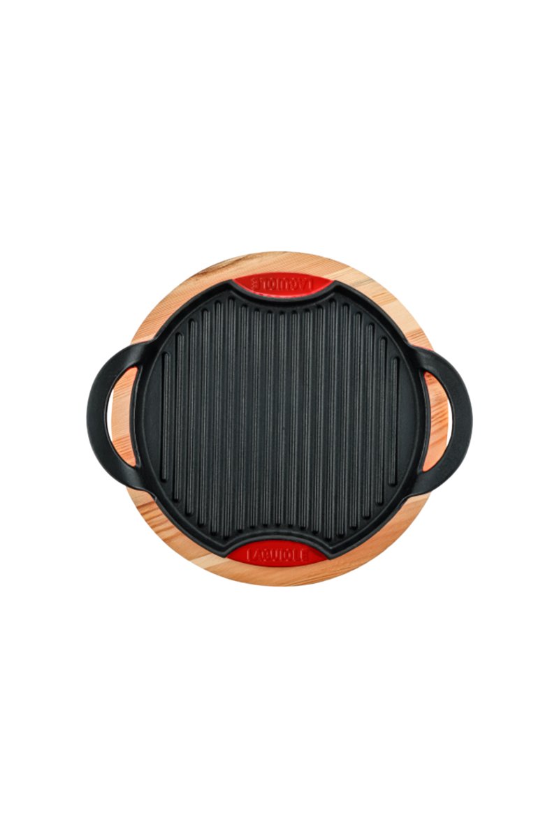 Grill rond en fonte émaillée avec support en bois - 28 cm