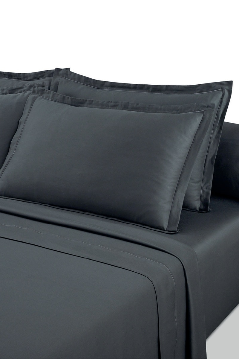Parure de draps en satin de coton Uni - 80 fils/cm² - Gris foncé