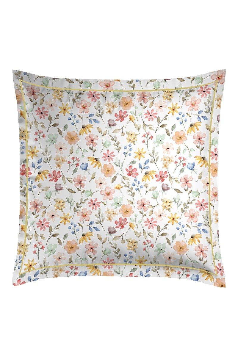 2 taies d'oreiller en satin de coton Fleurs d'été - 80 fils/cm² - Blanc et jaune