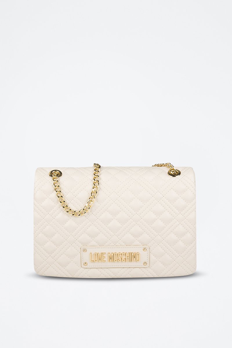 Love Moschino est une ligne jeune et amusante. Grâce à ses motifs fantaisie et lettrages, la marque met en avant le côté irrévérencieux de la maison italienne qui, depuis toujours, joue avec différents textiles et couleurs.