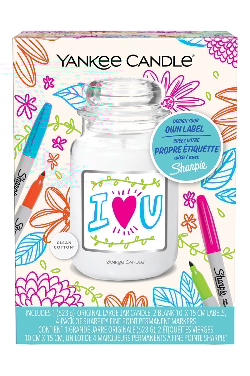 Coffret bougie parfumée jarre grand modèle - Coton frais et étiquette Sharpie