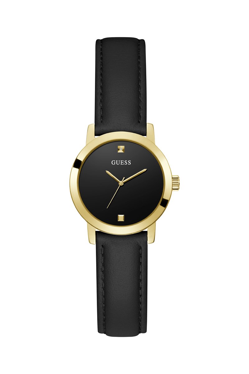 Montre à quartz en cuir - Noir et doré