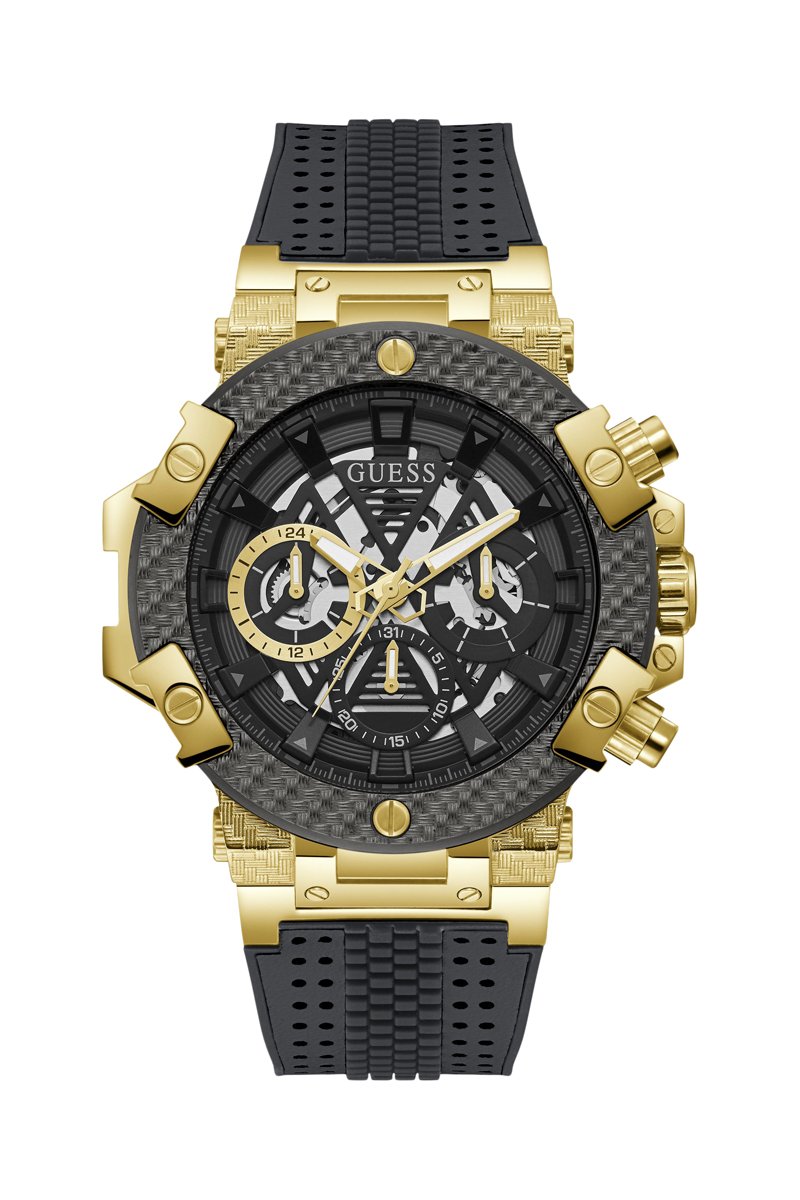 Montre à quartz en silicone - Noir et doré